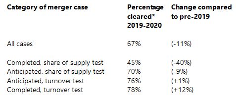 There’s been a big overall decline in the percentage of CMA cases cleared unconditionally (at Phase 1 or Phase 2)* in recent years.